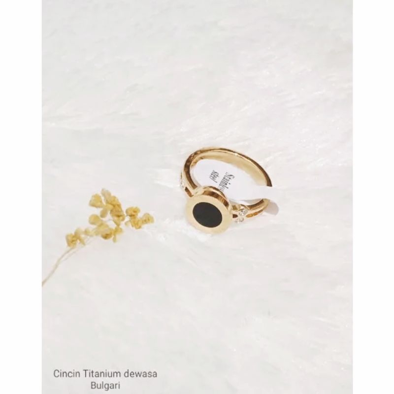 Detail CINCIN Titanium ANTIK KLASIK MATA HITAM BULAT GOLD DAN SILVER