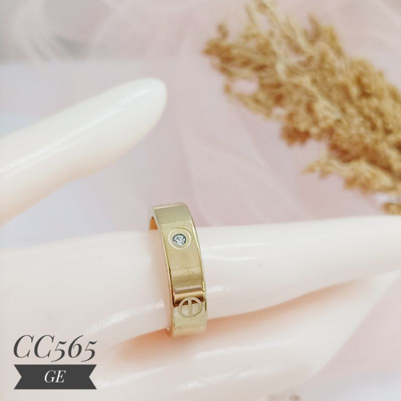Detail Cincin Titanium Mata Tanam warna gold CC565