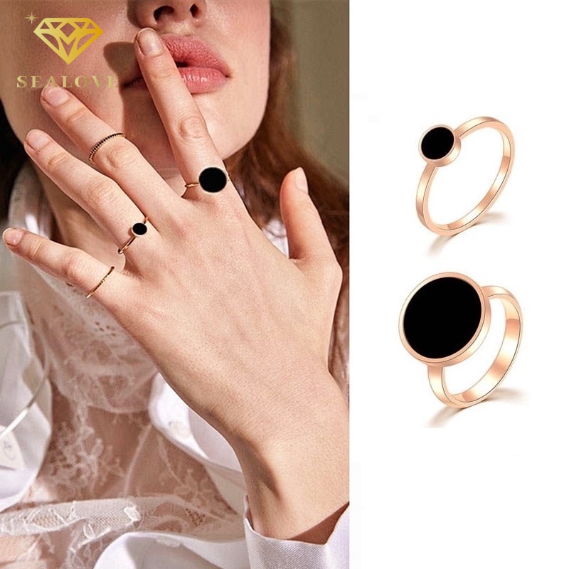 Cincin Titanium Wanita Anti Karat Bentuk Bulat Bahan Warna Hitam 18K Emas Korea Fashion Aksesoris cincin wanita 2023 terbaru