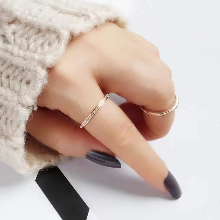 Model Number: Linda&Anne_Log-103 Gender : Pria & Wanita Jenis : Cincin Gaya: Pria dan wanita Bahan: Titanium Warna: Rose gold,Silver Package: 1 pc x Cincin Berat:6gr
