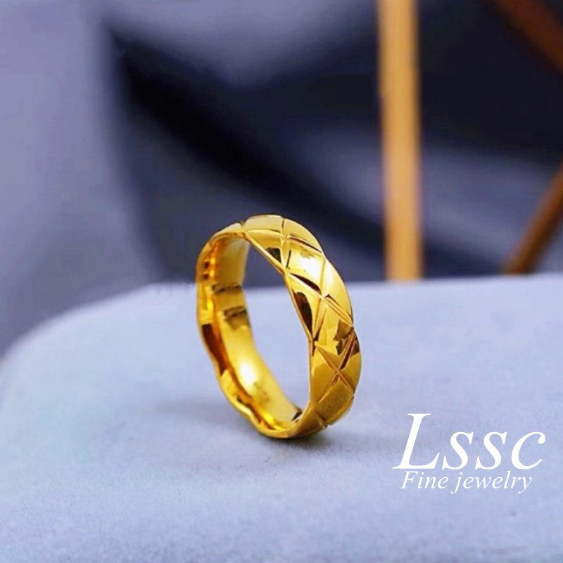 Detail Cincin Titanium Wanita Emas 18K Elegan Cantik Anti Karat Perhiasan Korea Fashion Aksesoris Pasangan