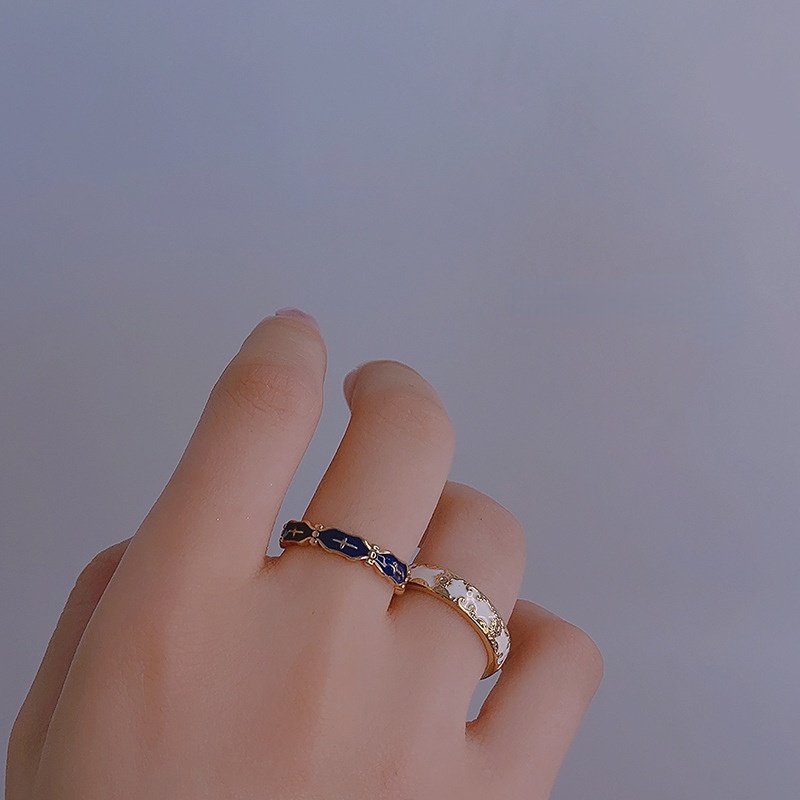 Detail Cincin Wanita Pola Putih Fashion Vintage Ins Temperamen Korea Cincin Silang Biru