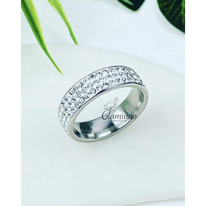 Detail cincin wanita titanium stainless anti karat mata berlian zircon