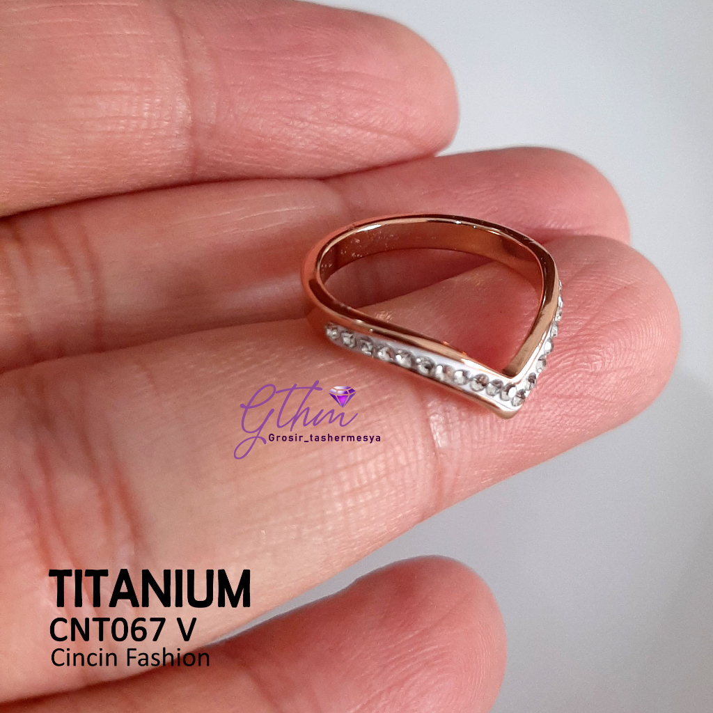 Detail Cincin Wanita Titanium V shape Elegan Fashionable Perhiasan Fashion Import Premium Anti karat cnt067