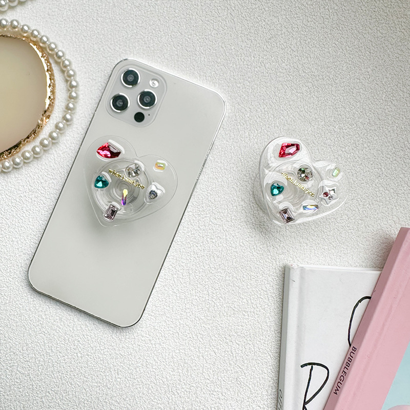 Detail Cinta Colorful Gemstone Diamond Phone Holder Ins Solid Braket Telepon Portabel