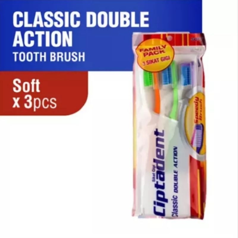 CIPTADENT Sikat Gigi Classic Double Action Isi 3 tersedia pilihan medium dan soft
