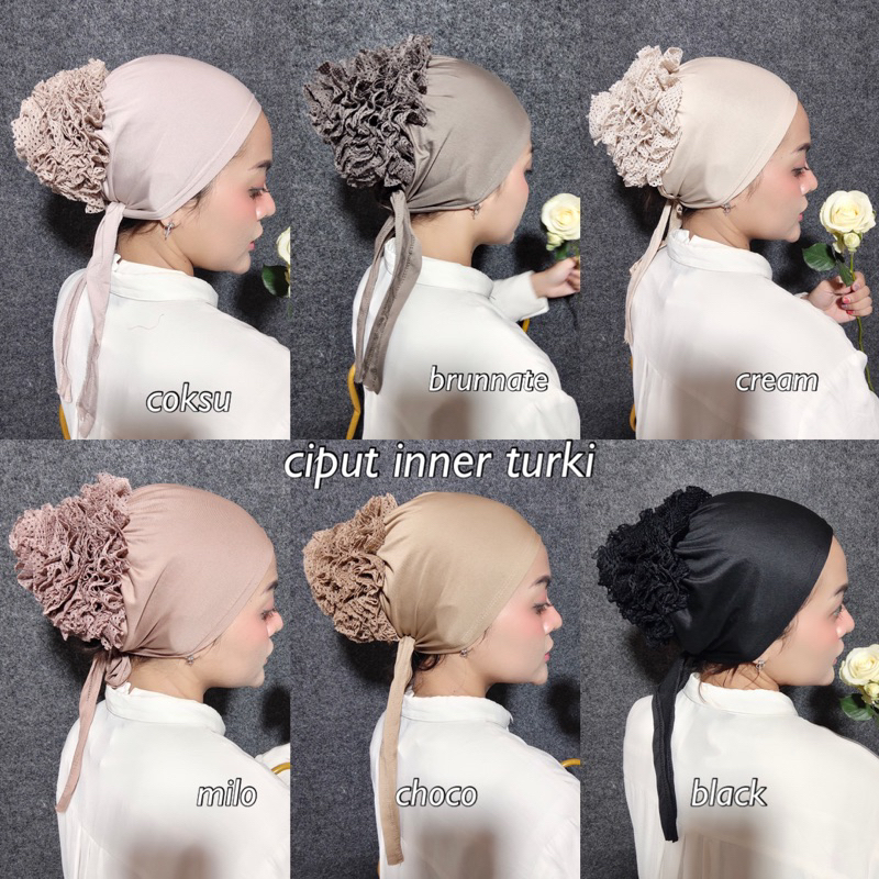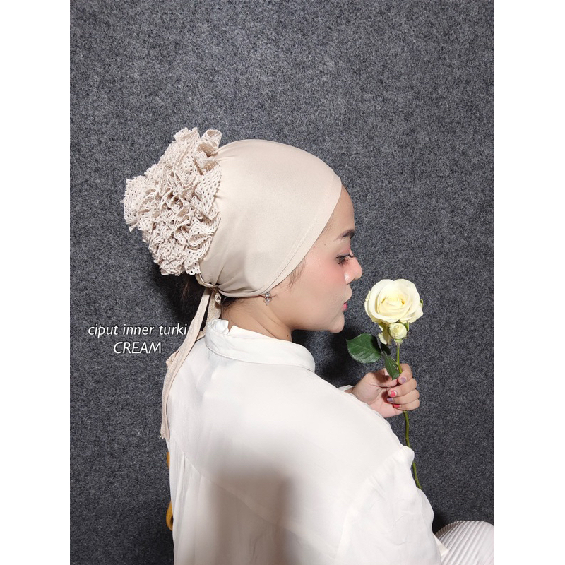 CIPUT πππππ πππππ // INNER BRUKAT inner yang sudah di lengkapi dengan cepol segingga ga perlu pakai scrunchie lagiiβ¨β¨ β¨ Bahan : Jersey plus brukat β¨ Detail bahan : β’ menggunakan bahan dasar jersey original yang jatuh mengikuti bentuk kepala ga sakit di telinga karena ringan bahannya .dengan kombinasi brukat yang membuat hijab lebih bervolume