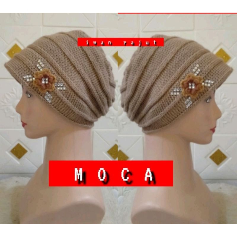 Detail Ciput/kerpus rajut nenek turban ibu payet bunga Ck