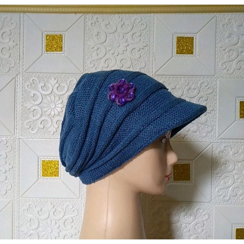 Fashion Muslim > Hijab > Ciput > ciput nenek turban topi payet rajut bunga