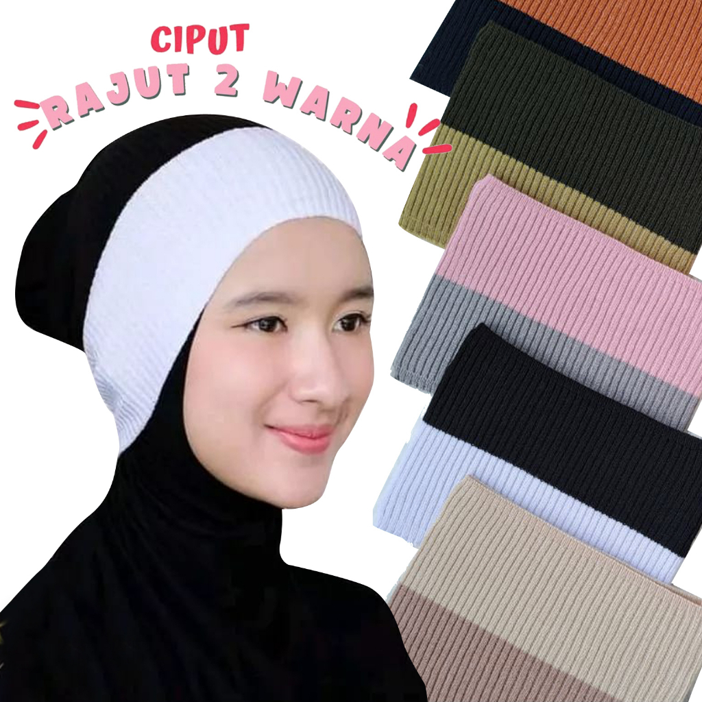 Detail Ciput Rajut 2 Warna dalaman jilbab ciput anti pusing