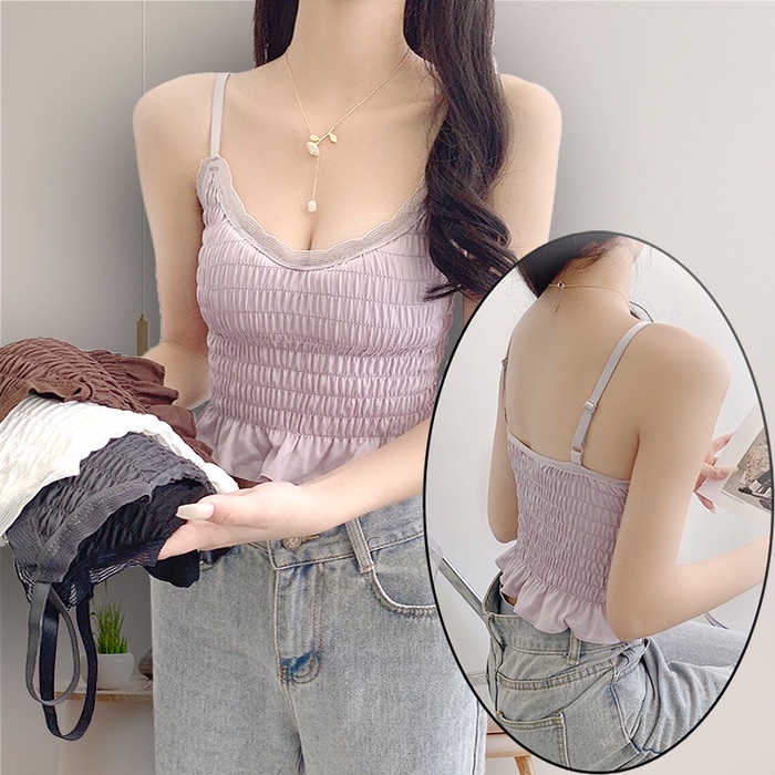 TINO-TINO Sexy Lace Ruffle Tank Top Bra Wanita Renda/Crop Top Bra