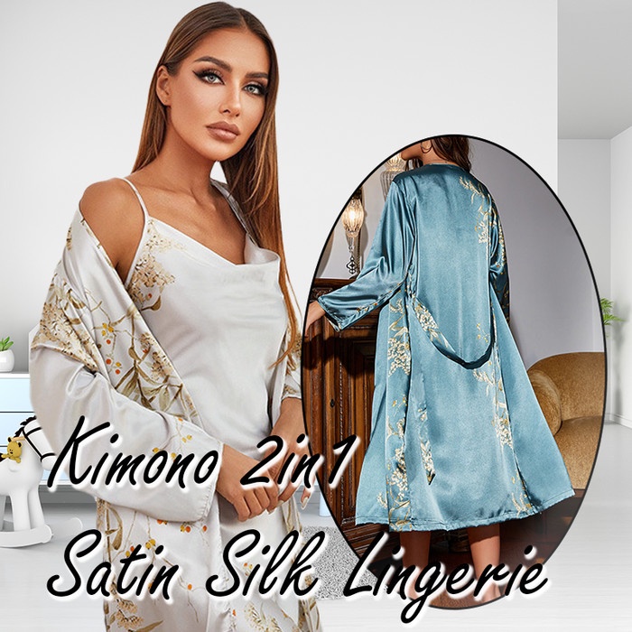 TINO TINO Kimono 2 in 1 Satin silk/Baju Tidur Sexy Lingerie Wanita / Sleepwear Lingerie Kimono / Seserahan