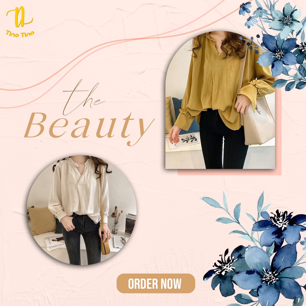 TINO TINO WOMEN BLOUSE KOREAN TOP RUFFLE SLEEVES/ KEMEJA WANITA POLOS LENGAN PANJANG KASUAL