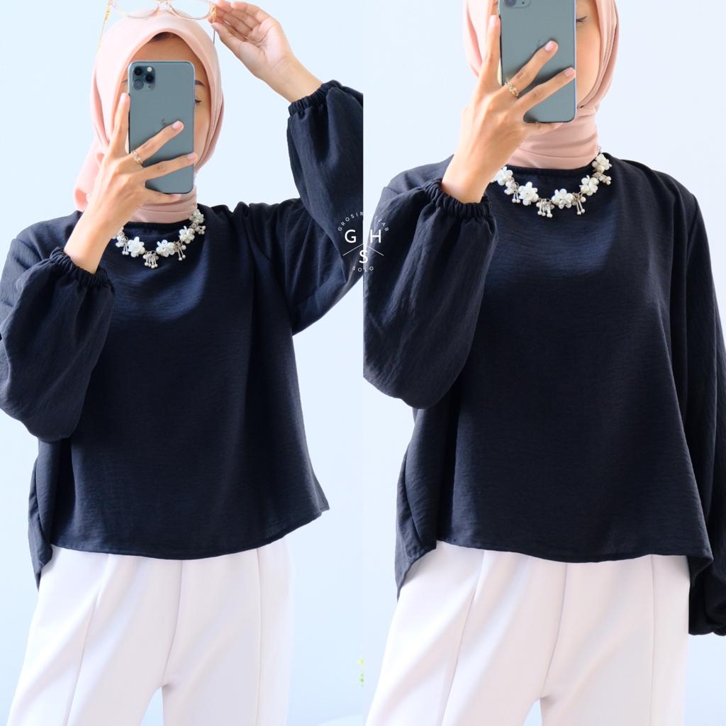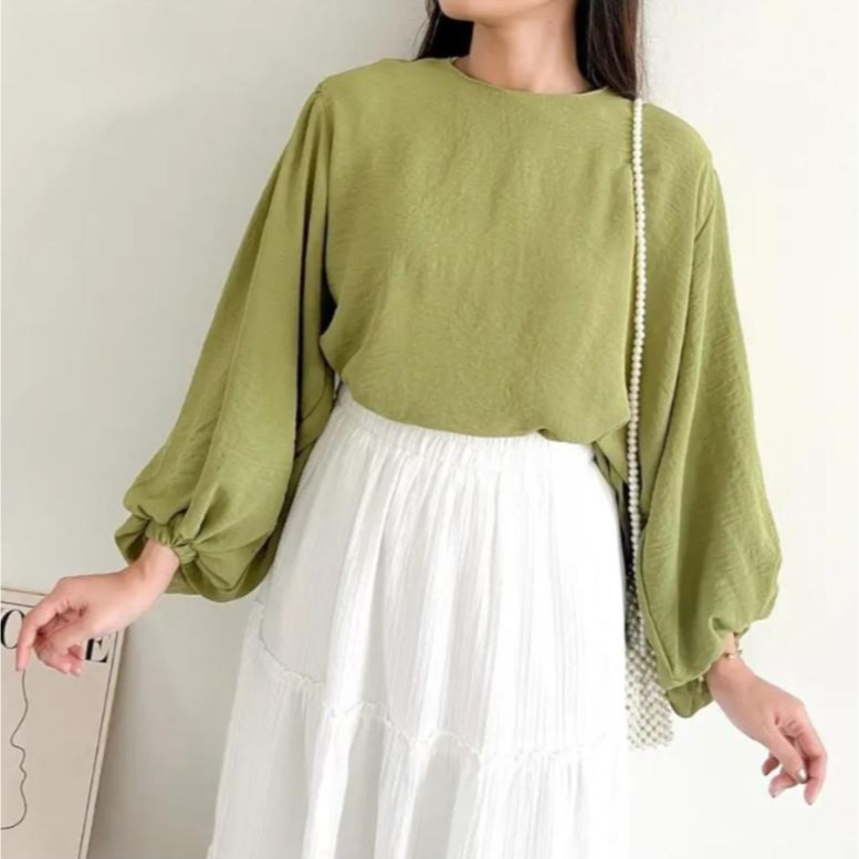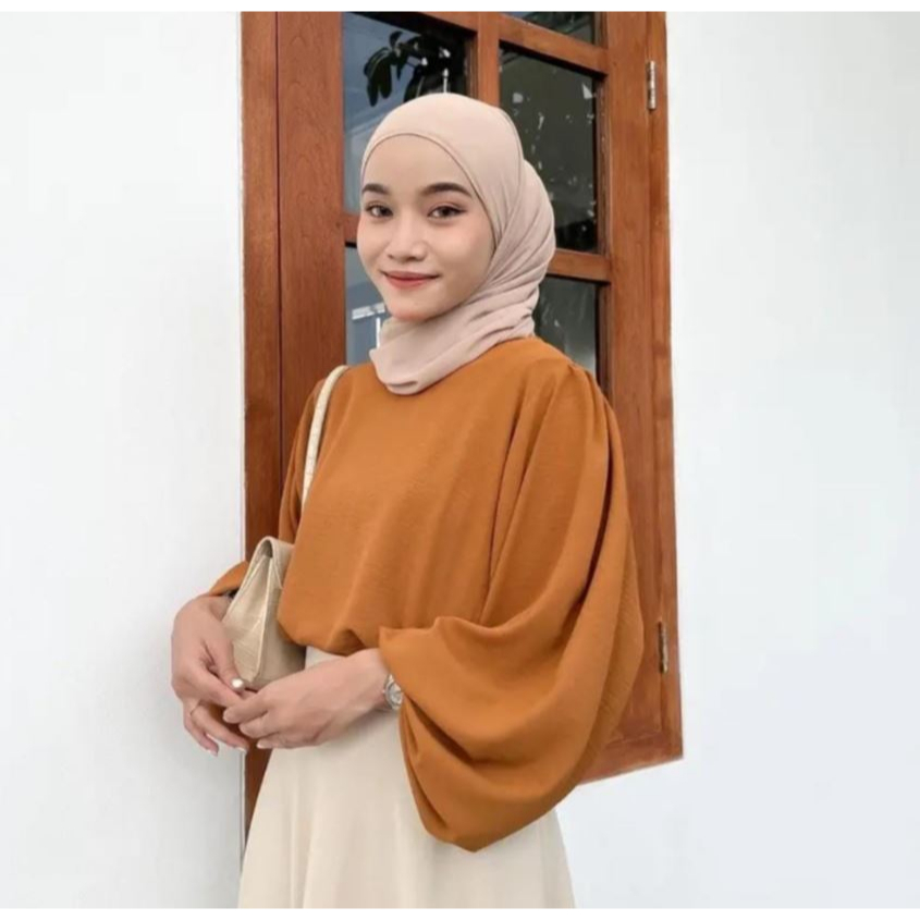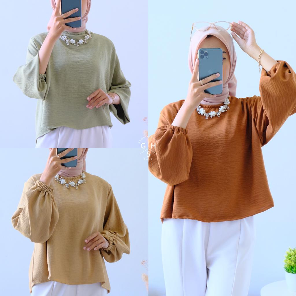 ๐๐๐๐๐๐๐ ๐๐๐๐๐ : ๐blouse oversize, non busui kancing belakang, pergelangan tangan kerut ๐ bahan crincle airflow adem dan nyaman di pakai