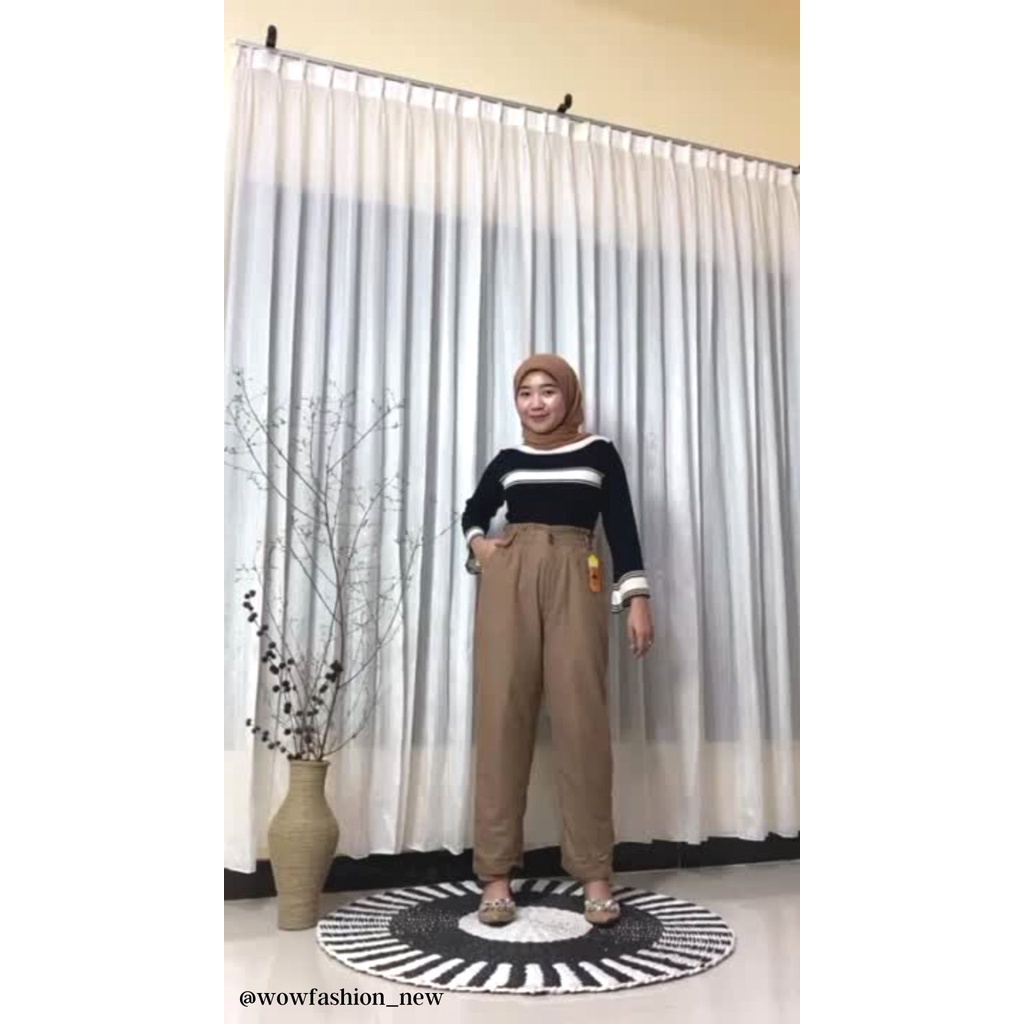 Model : - Celana kantor - Pinggang Full karet - Kancing 2 aktif - Saku kanan kiri aktif - Resleting depan - Lipat bawah