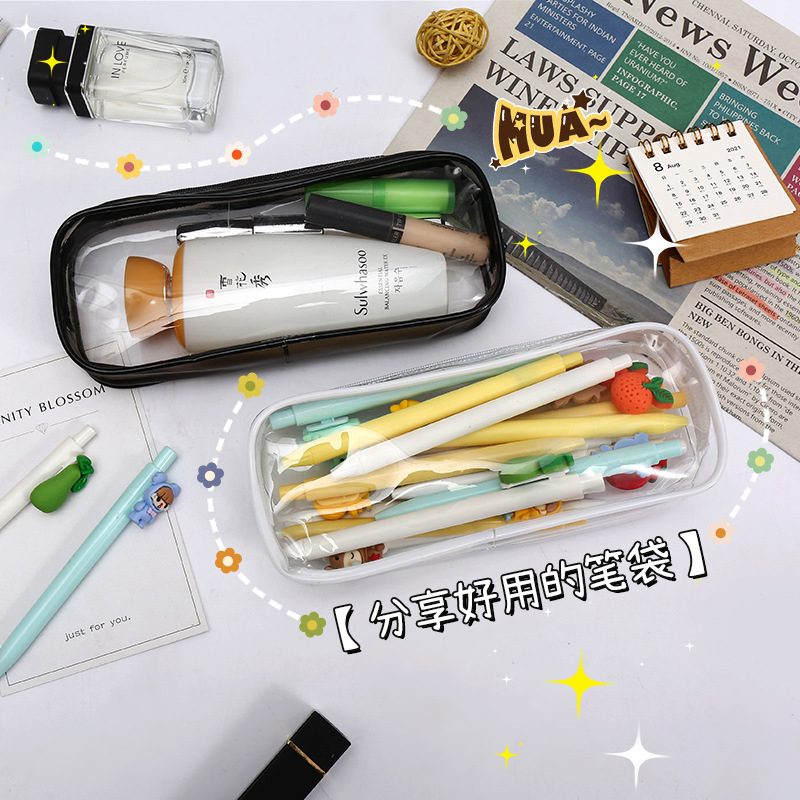 Buku & Alat Tulis > Perlengkapan Sekolah & Kantor > Tempat Pensil > (CLASHOP)Tepak Pensil Transparan Estetik Aesthetic Lucu / Kotak PVC Plastik Pencil Case Minimalist Black White Minimalis