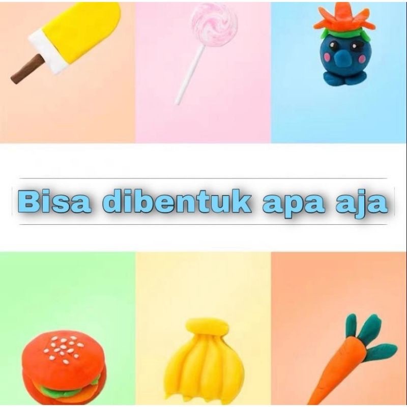 Bisa dibentuk menjadi berbagai kreasi 3 dimensi, kenyal dan begitu kering dpt dijadikan mainan, gantungan kunci, anting2, dll Tidak berantakan dan pecah2 setelah kering, hasil kreasi bisa disimpan dan tahan lama, tidak seperti clay biasa. Varian warna yang bagus dan warna bisa dicampur untuk membuat warna baru
