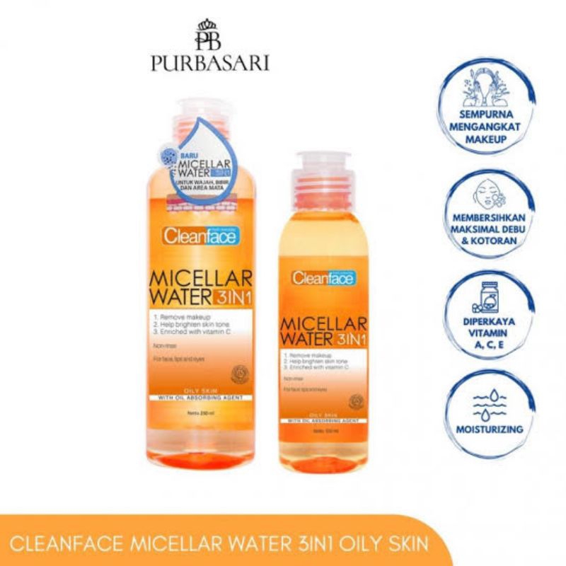 Purbasari Cleanface 3in1 Micellar Water Normal Skin - Oily Skin - Micellar Water