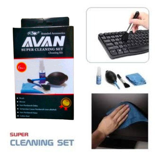 DESKRIPSI PEMBERSIH / CLEANING KIT (6 IN 1) Dapat Membersihkan : =Lensa/LCD/LCD Laptop/PC/Monitor/Kamera/Layar Tv/Keyboard/Mouse/Kaca Mata/Layar Hp - Mini Brush Berfungsi Untuk Membersihkan Debu Bagian Luar - Blower Tools Untuk Meniup Debu/Kotoran Yang Menempel di Permukaan - Kain lap pembersih - Cairan Pembersih Pemakaian Cukup Semprotkan Pada Kain Kemudian Lapkan Pada Permukaan Lensa/LCD Setelah Proses Brush & Blower Selesai - Extra Kain Lensa Untuk Membersihkan Lensa/LCD/Layar Tv/Kaca Mata/Layar Hp/Lcd Laptop dan PC - Extra Cotton Bud Untuk Membersihkan Sela-Sela yg susah di jankau Lap Atau Kuas ISI PAKET 6 IN 1 : 1.Brush 2.Blower 3.Kain Pembersih Debu 4.Semprotan Cairan Pembersih(non alkohol) 5.Kain Pembersih Kaca 6.Cotton Bud