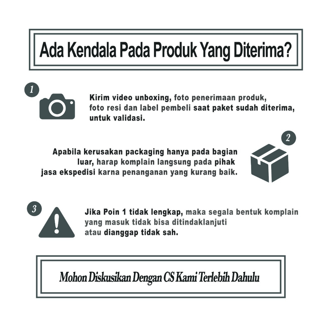MOHON PERHATIKAN VARIAN PRODUK SEBELUM MELAKUKAN PEMBELIAN *Barang Sebelum Di Kirim Akan Kita Chek Terlebih Dahulu *Garansi Tukar Barang Baru Jika Ada Cacat Pabrik Selama segel belum di buka dan ada video unboxing