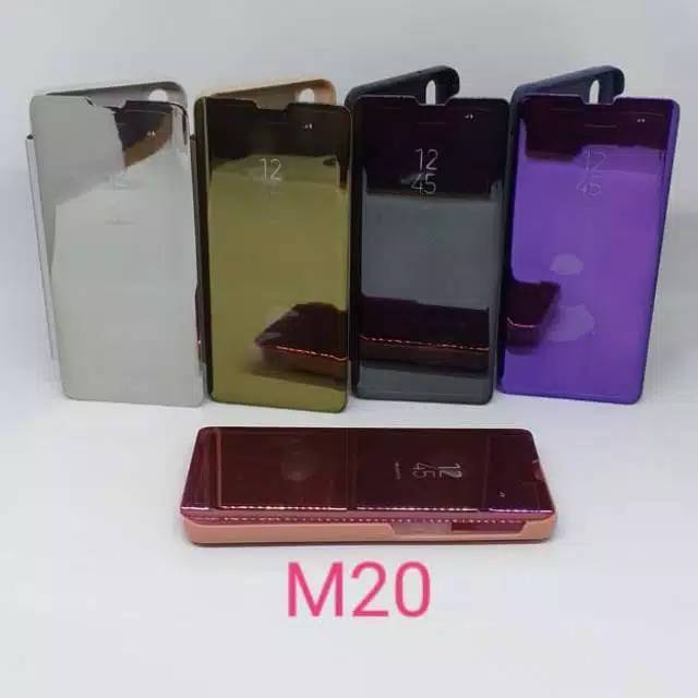 Handphone & Aksesoris > Casing & Skin > Casing & Skin Handphone > Clear View Samsung M20 Flip Cover Mirror Case Samsung M20 Standing Covet