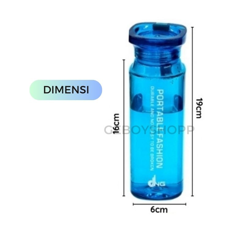 Botol berbahan Plastik HIGH QUALITY. Bahan Plastik Tebal dan Keras BUKAN Bahan Plastik Letoy. Cocok untuk di bawa kemana". Didesign dengan model minimalis dan sangat elegan. Sangat aman di pakai jangka waktu lama.