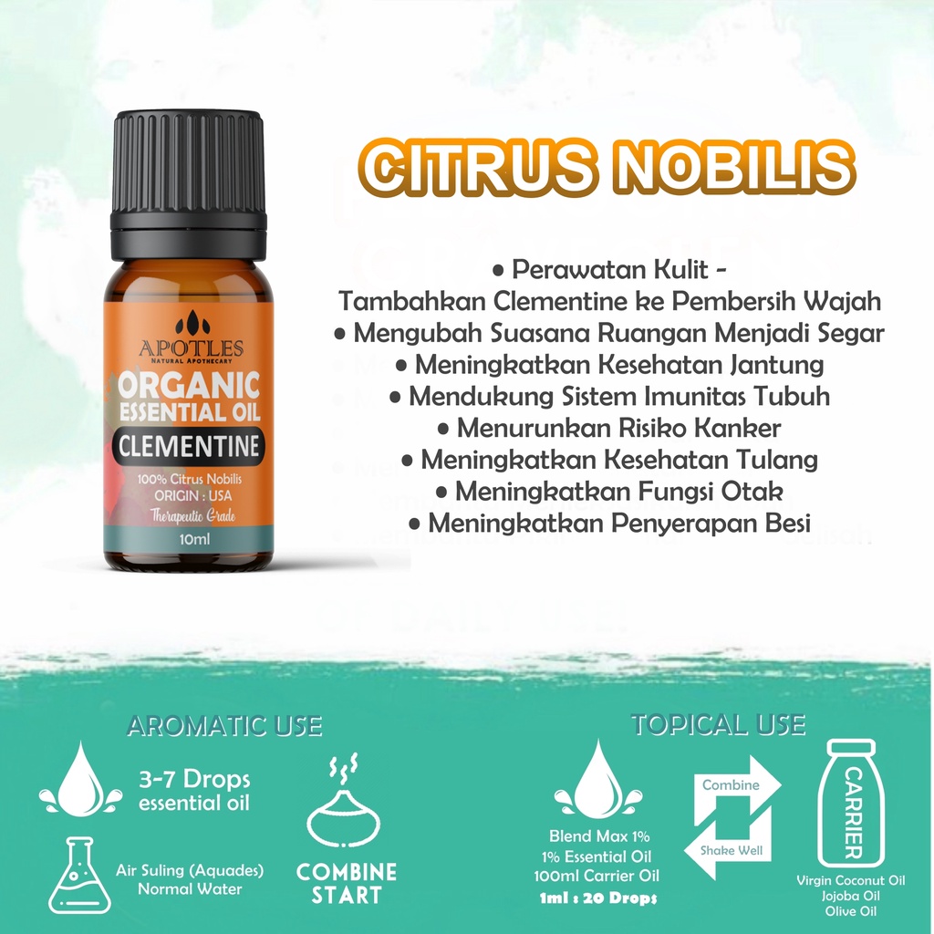 Kegunaan Apotles Clementine Essential Oil (Aromatherapy) :