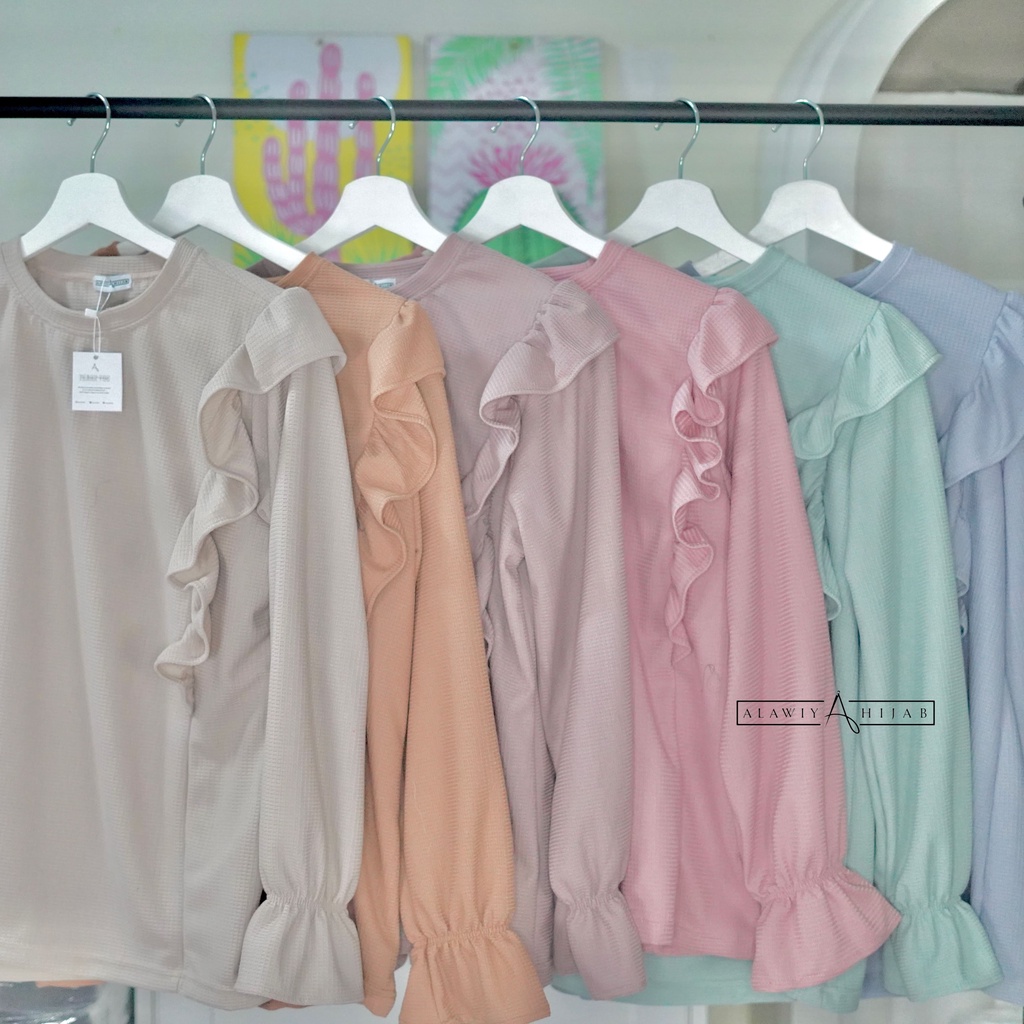 Video perkenalan produk CLEO WAFFLE TOP/ATASAN BLOUSE RUFFLE ALAWIYAHIJAB. Sumber: Shopee.
