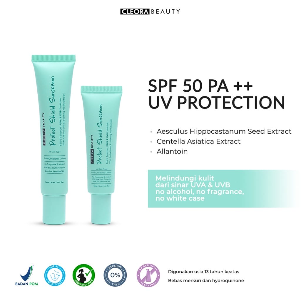 Protect Shield Sunscreen dengan formula yang ringan dan tidak lengket di kulit. Mengandung UV Absorber untuk memberikan perlindungan bagi kulit dari pengaruh buruk sinar ultraviolet UVA dan UVB.