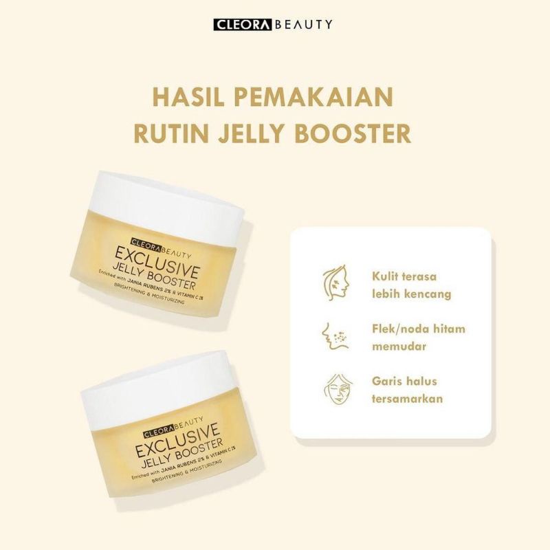 Exclusive Jelly Booster adalah Moisturizer berbentuk Gel lembut. Memiliki manfaat 3 In 1 yaitu sebagai Brightening, Moisturizing dan Anti Aging, dapat digunakan setiap hari untuk mendapatkan kulit wajah yang tampak lebih cerah dan bersinar.