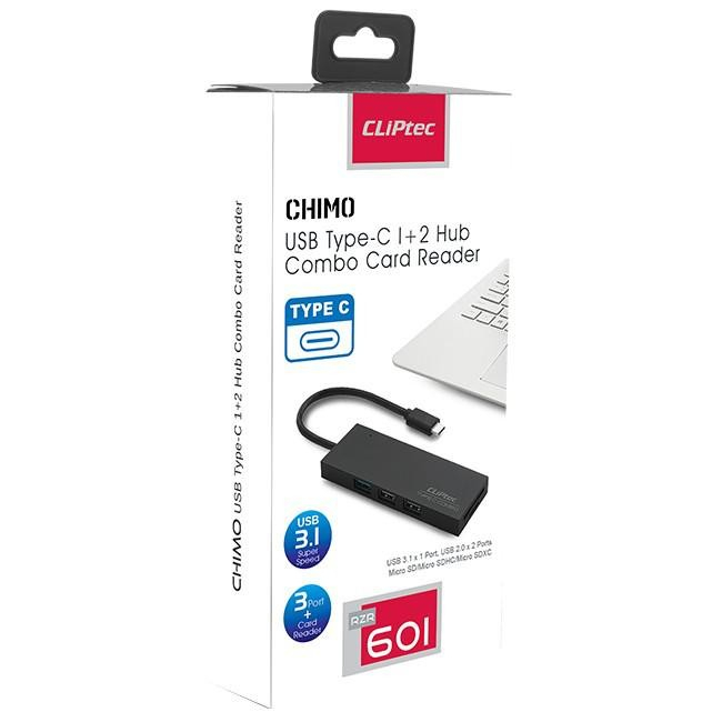 CLIPTEC RZR 602 CARD READER USB TYPE-C (RZR-602) USB TYPE-C 1+ 2 HUB COMBO CARD READER USB 3.1 - USB 2.0 ) 105,000 MICRO SD / MICRO SDHC / MICRO SDXC.