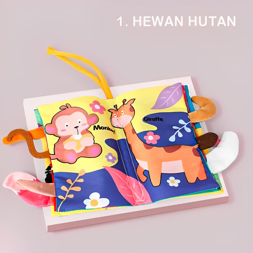 CLOTH BOOK Animal Tail Soft adalah buku kain yang cocok untuk anak-anak yang sedang belajar sambil bermain. Buku kain ini memiliki berbagai macam gambar hewan yang lucu dan menggemaskan, serta warna-warni yang merangsang perkembangan otak anak.