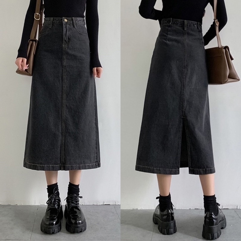 baggy vintage wide leg unfinished jeans kulot denim highwaist loose light blue denim snow straight denim skirt jeans blue korean aesthetic rok maxi slit midi korean black washed adjustable button