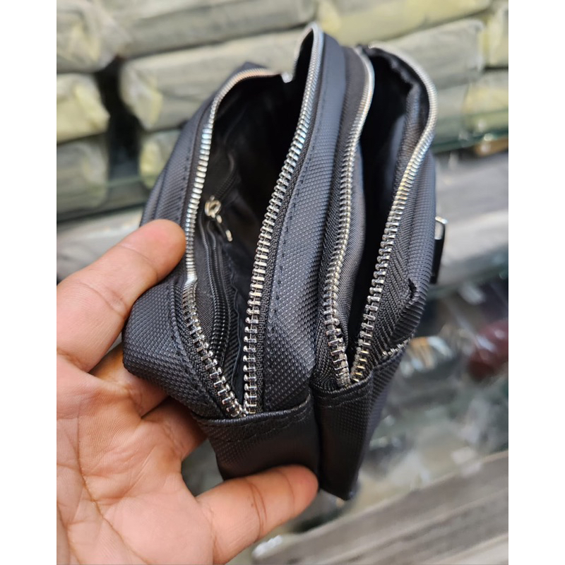 DETAIL : ๐ Material : Parasut ๐ Size : 22,5x6x14 cm ๐ 2 kompartemen utama yang cukup luas dan 1 kantong didalam ๐ 1 kompaertemen tambahan didepan dan belakang ๐ Terdapat pegangan di bagian samping ๐ Jahitan kuat dan rapi ๐ Real picture