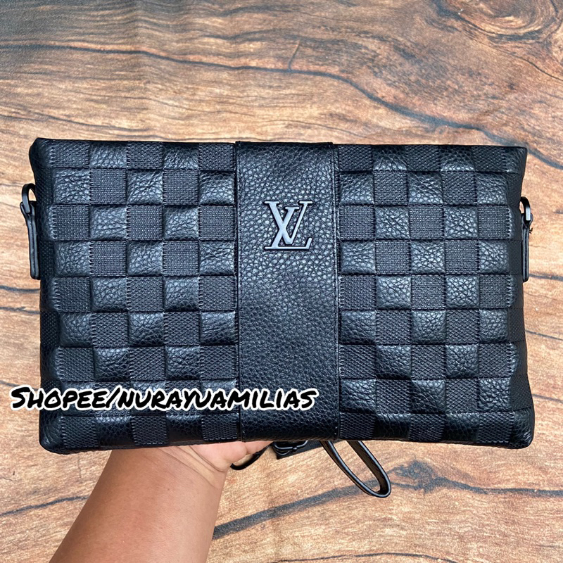 Detail clutch lv full emboss pria wanita import clutch kulit asli lv