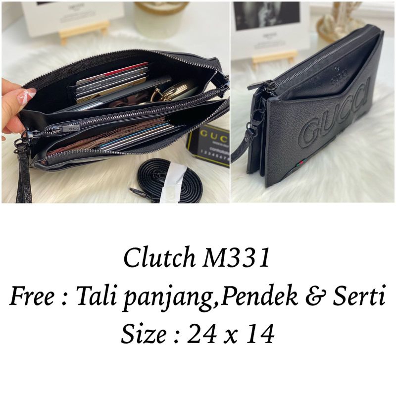 Ready Clutch M331 Bahan PU leather Ada slot kartu Size 24x14cm Free tali panjang dan tali pendek,Serti & Dusbag Aksessoris sudah full hembos Ada katong didepan Detail lengkap ada di video
