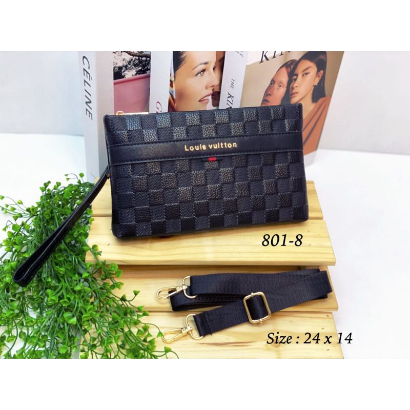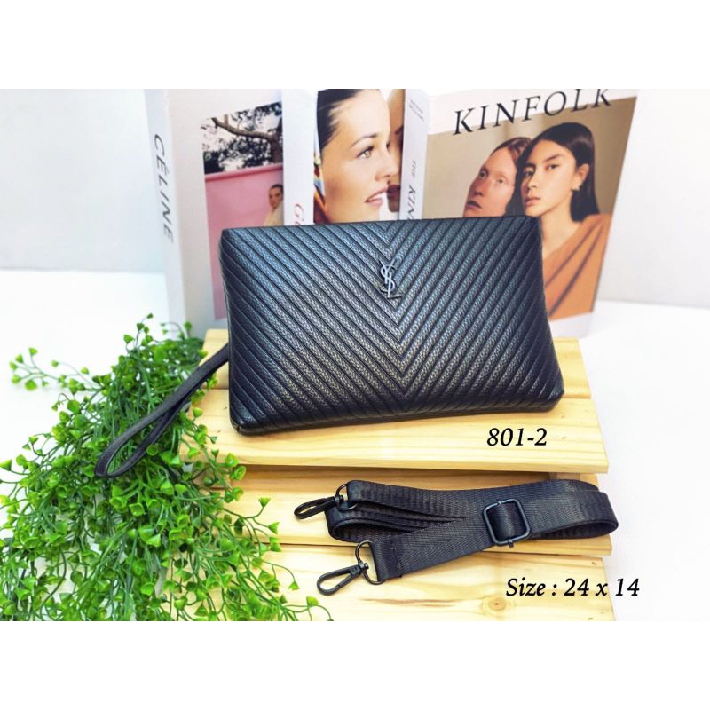 Ready clutch mini Bahan kulit sintetis Produk import Kwalitas super 1 ruang utama Ada 6 slot kartu Aksesoris sudah hembos Free tali panjang dan tali pendek Size 24 x 14