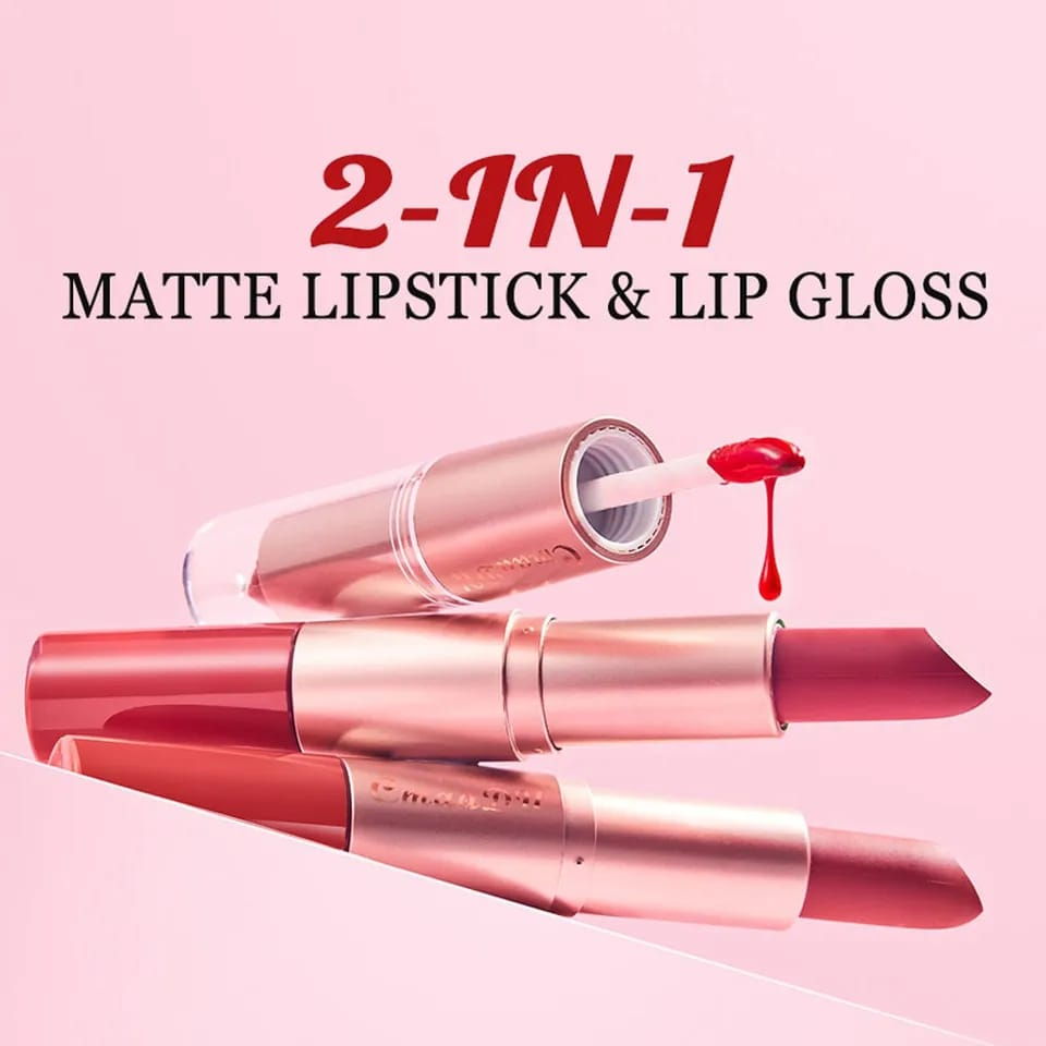 Detail CMAADU Lipstik Liquid 2 in 1 Double Matte 12 Warna Waterproof Long Lasting Lipstick/ Velvet Matte Lipgloss Kepala Ganda Lipstick Matte