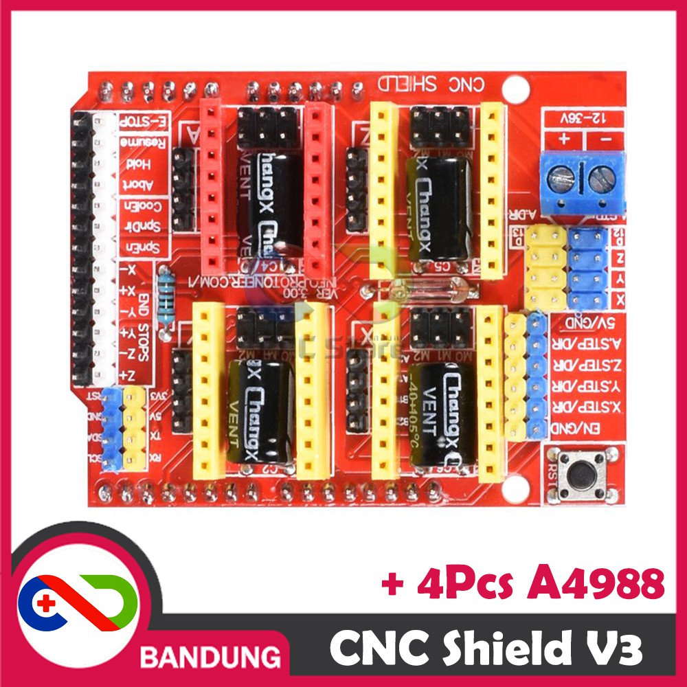 Spesifikasi: ================================= - Arduino CNC Shield Versi 3.10 - GRBL 0.9 compatible. (Open source firmware yang bisa agan pake di Arduino UNO yang ngubah G-code commands jadi sinyal untuk stepper motor) - PWM Spindle dan direction pins - 4-Axis support (X, Y, Z , A) - A4988 motor stepper drivers (4Pcs lengkap pake heatsink)
