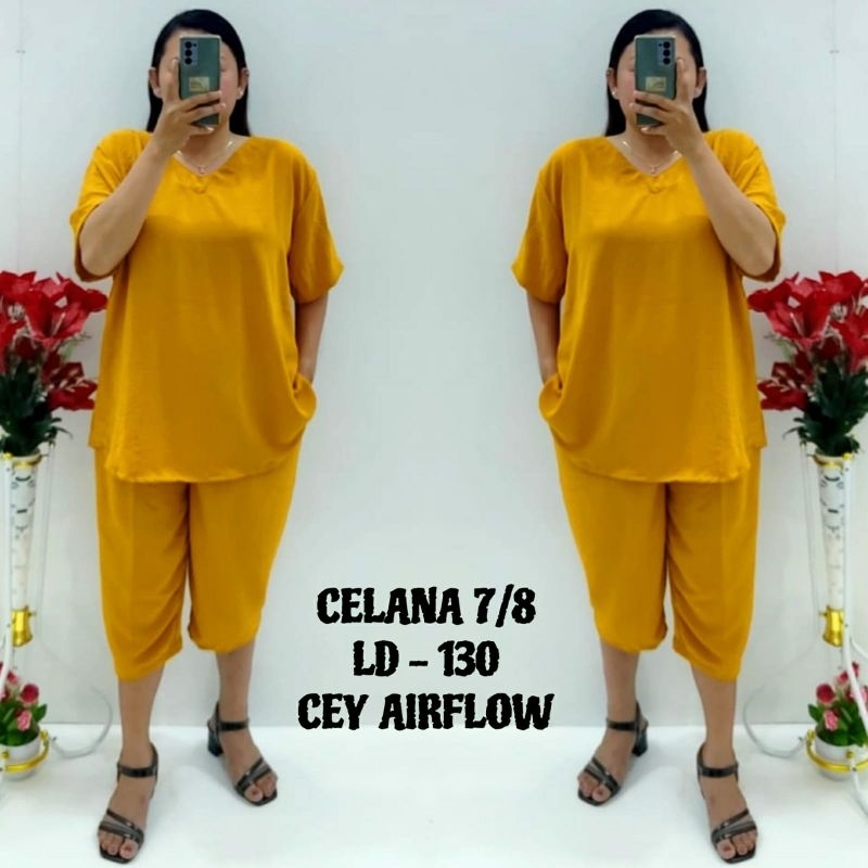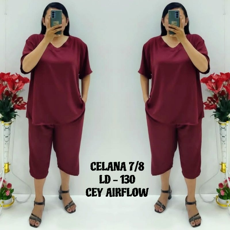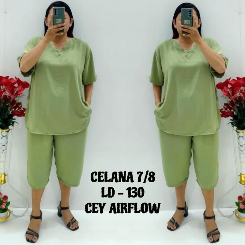 CNC - Viral Wanita Dewasa Terbaru/Stelan Celana 7/8 V 5XL Cey Airflow Cringkel Polos