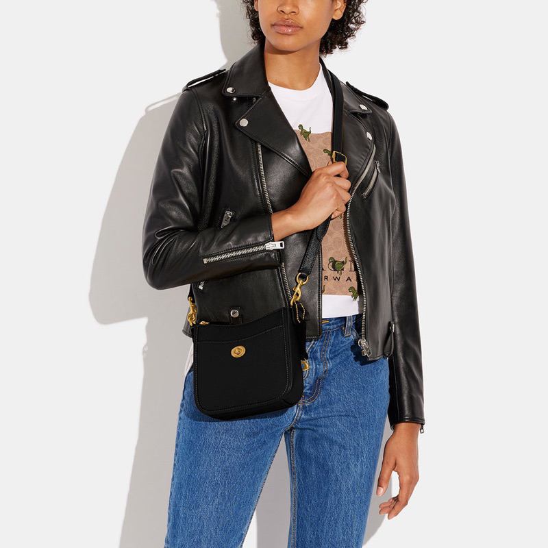 COACH LEATHER CAMERA BAG WITH HORSE AND CARRIAGE DOT PRINT CROSSBODY - TAS COACH HORSE 100% ORIGINAL SMALL SHOULDER BAG