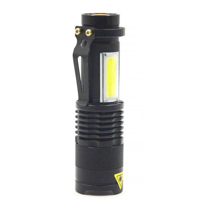Senter LED ini hadir dengan 2 jenis LED yaitu Cree XML Q5 pada bagian depan dan LED COB pada bagian samping yang berfungsi seperti lampu lantera atau torch light. Memiliki bentuk yang kecil sehingga wajib untuk dibawa kemana saja Anda berpergian dan digunakan dalam keadaan darurat. Note: Tidak termasuk baterai. Features CREE XML Q5 LED Senter LED ini dilengkapi dengan sebuah LED CREE XML Q5 yang sangat dapat menghasilkan cahaya hingga 3800 lumens. COB LED Selain XML Q5 pada bagian depan juga terdapat LED COB yang tersembunyi di samping body senter ini. Desain LED samping ini membuat senter LED ini dapat dimanfaatkan sebagai lampu lantera. 1 x 14500 Battery Senter LED ini hanya menggunakan sebuah baterai 14500 atau baterai AA sehingga sangat hemat energy dan mudah untuk diganti. 3 Modes Senter ini memiliki 3 mode yaitu high, low dan SOS. Mini Design Senter LED ini memiliki bentuk yang kecil sehingga wajib untuk dibawa kemana saja Anda berpergian dan digunakan dalam keadaan darurat. Package Contents Barang-barang yang Anda dapat dalam kotak produk: 1 x Senter LED Torch Multifungsi Cree XML Q5 + COB 3800 Lumens