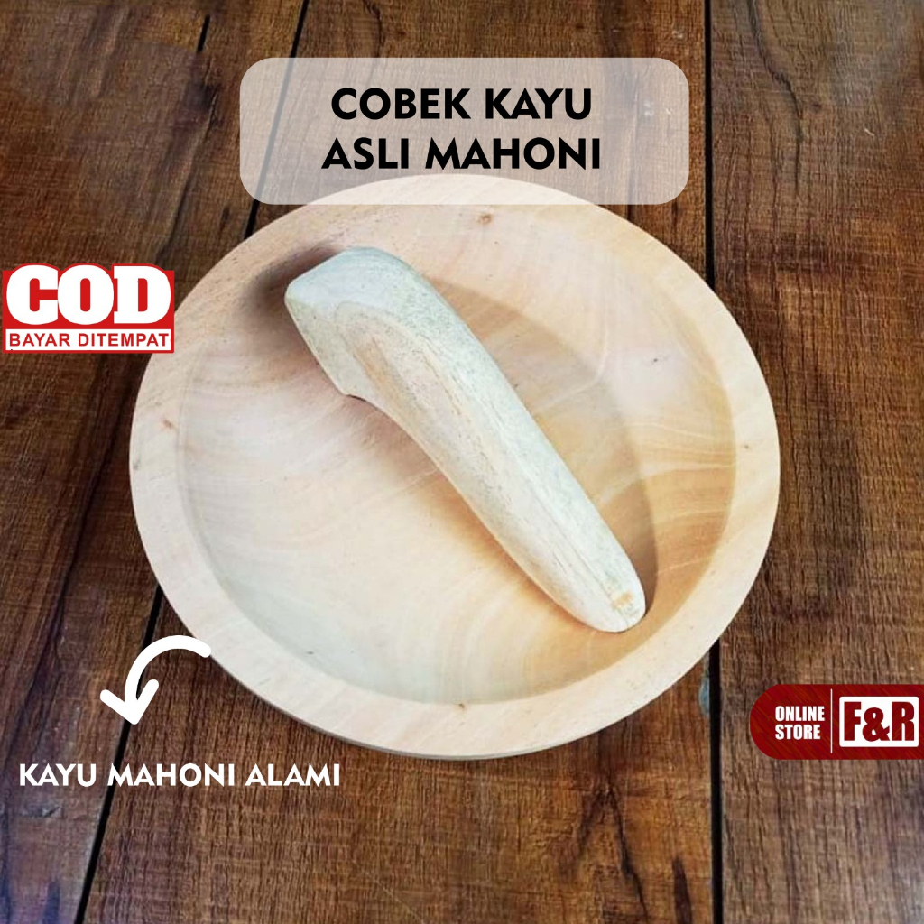 Detail Cobek Kayu Premium Mahony Alat Tumbukan Bahan Makanan Ulekan Kayu