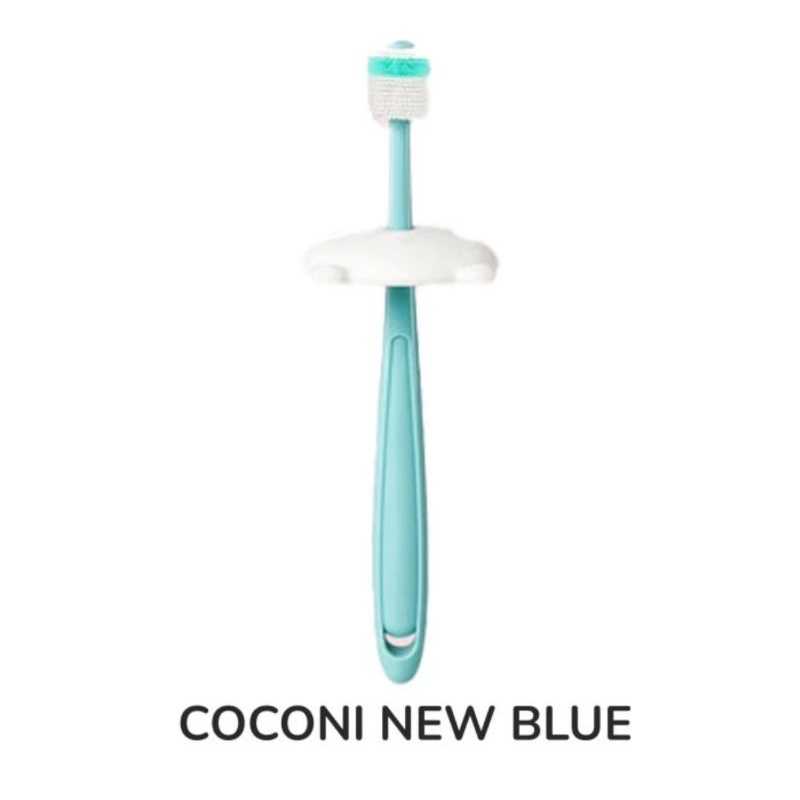 Coconi 360 baby toothbrush adalah sikat gigi yang memilki bentuk unik dimana bulu sikat terletak melingkar 360 derajat. Adanya bulu sikat yang melingkar memungkinkan hasil yang lebih bagus dibanding sikat gigi pada umumnya hal ini dikarenakan permukaan sentuh antara bulu sikat dengan gigi/gusi lebih banyak.