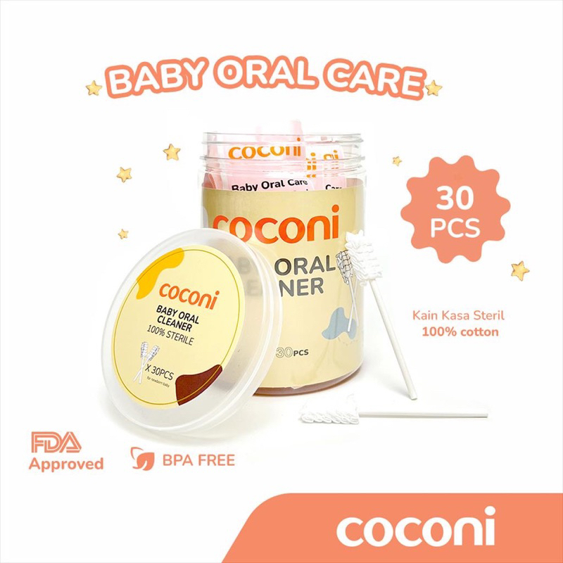 COCONI Baby Oral Cleaner terbuat dari Kain Kasa berbahan 100% Cotton Steril dan dikemas secara individual. Kain kasa digunakan untuk membersihkan gusi dan lidah bayi., terbuat dari bahan premium yang lembut dan halus untuk menghindari luka pada lidah / gusi bayi
