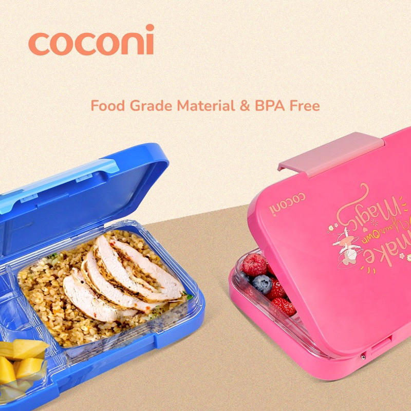 Coconi Bento-Go mendorong kebiasaan makan yang sehat dengan membuatnya sangat mudah bagi semua orang untuk menyiapkan dan mengemas berbagai makanan sehat. Bawa Coconi Bento-Go ke sekolah, kerja, jalan-jalan, piknik, dan olahraga.