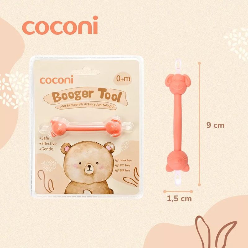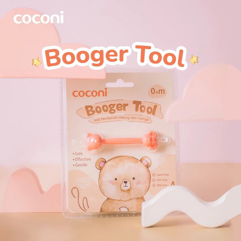 Coconi Booger Tool adalah alat pembersih telinga dan hidung bayi yang dirancang khusus untuk membersihkan kotoran seperti lendir yang lengket maupun kotoran yang sudah mengeras. Bagian scoop (bagian ujung seperti sendok) menggunakan bahan silicon, sehingga tidak akan terasa sakit saat proses pembersihan, anak akan tenang dan nyaman saat dibersihkan.