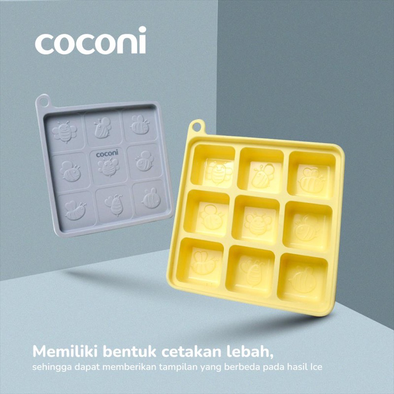 Coconi Silicone Food Ice Tray Cube Dengan 9 lubang masing masing kapasitas 30ml. Sangat cocok untuk digunakan untuk menyimpanan makanan MPASI karena ukuran sangat cocok untuk porsi makan Bayi.