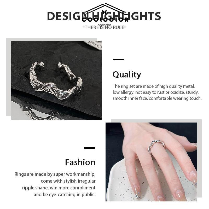 Aksesoris Fashion > Cincin > COD❤️1 Pasangan cincin Pembukaan bergelombang tidak teratur cincin polos desain niche cincin batu bulan yang modis dan indah- cl