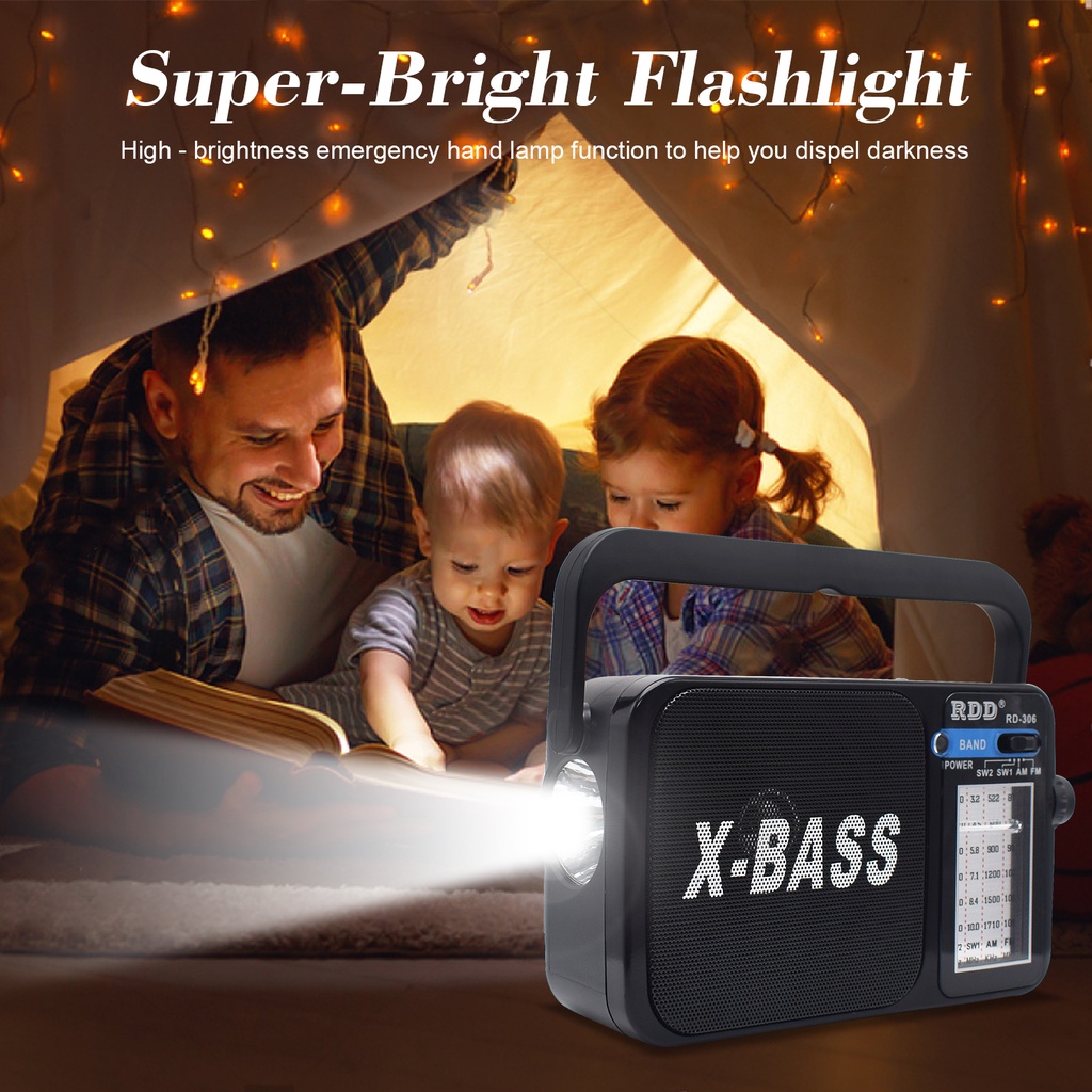 Detail {COD} 100% Ori Radio RD-306 Speaker FM/AM/SW1/SW2 Portable 4 Band Pocket Radio mini dengan senter